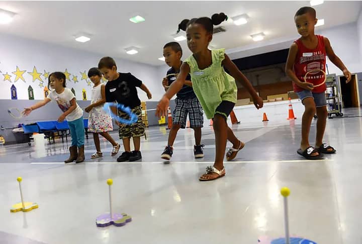 You don’t need a large field to have fun. Small outdoor spaces can be used for light, family-friendly activities. Families can play: